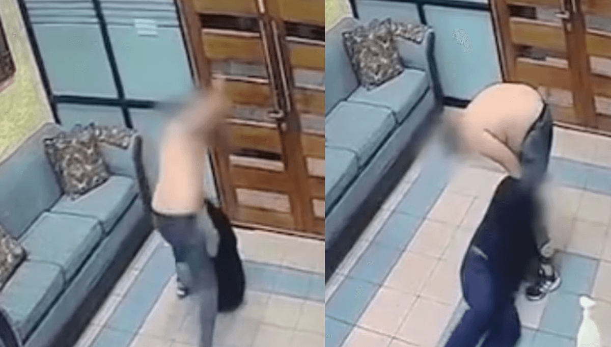 De acuerdo al relato del agredido y el registro extraído de las cámaras de seguridad del edificio, el hecho se desencadenó luego que el conserje solicitara a dos personas que iban ingresando al recinto que se identificaran, donde uno de ellos era residente del lugar.